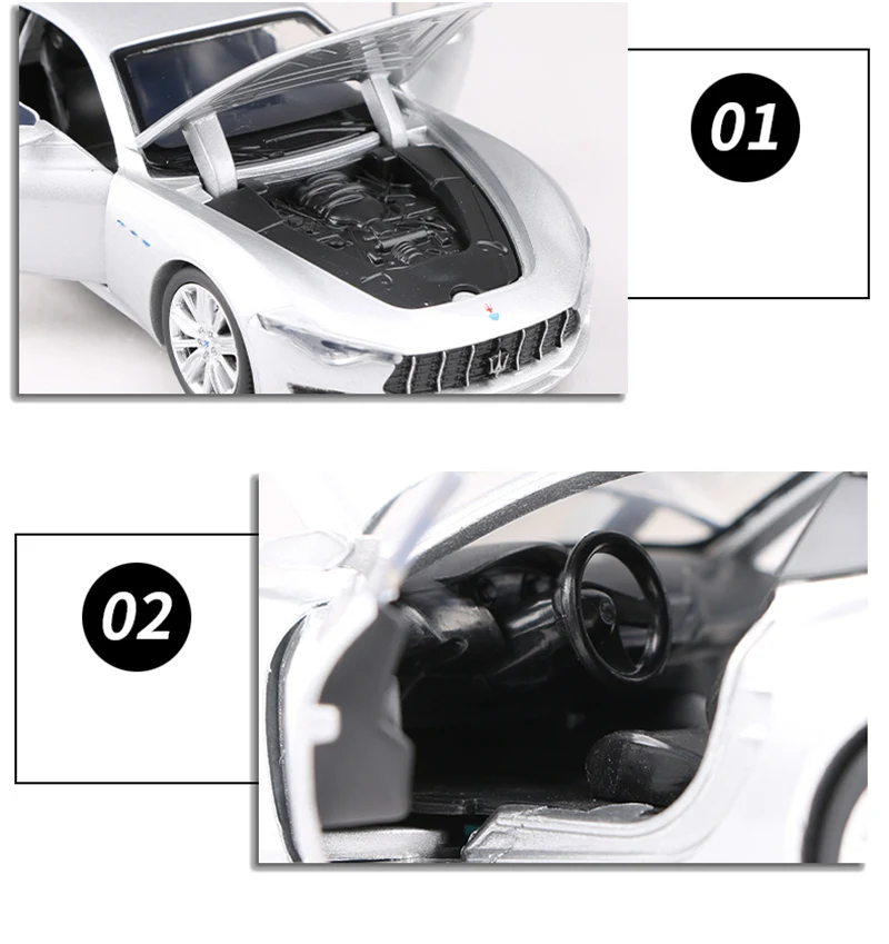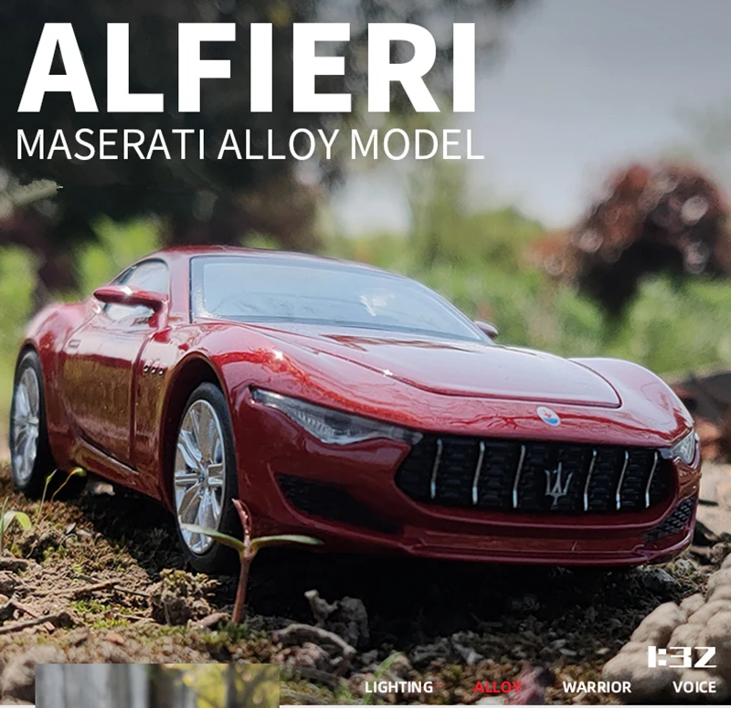 1:32 Maserati Alfieri Coupe Alloy Sports Car Model Diecast Metal Vehicle Car Model Simulation Sound and Light Childrens Toy Gift