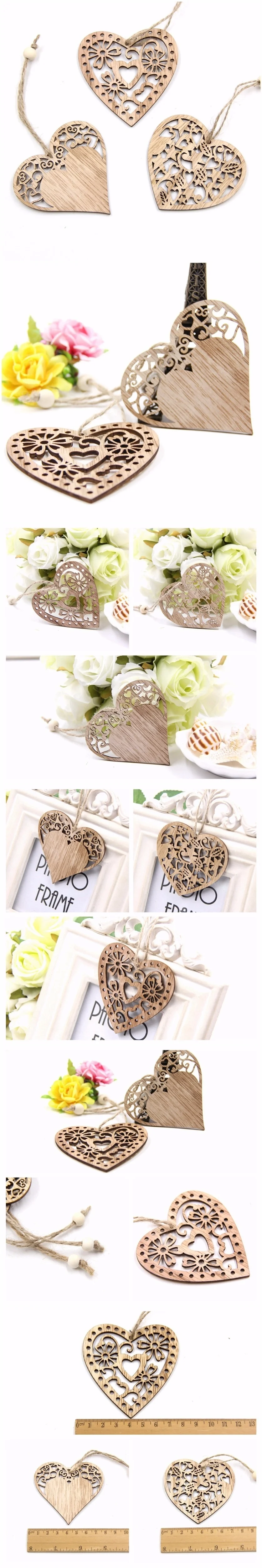 12PCS/Lot DIY Hollow Heart Wooden Pendants Ornaments Party Gifts Home Decor Wedding/Christmas Party Decorations Kids Gift