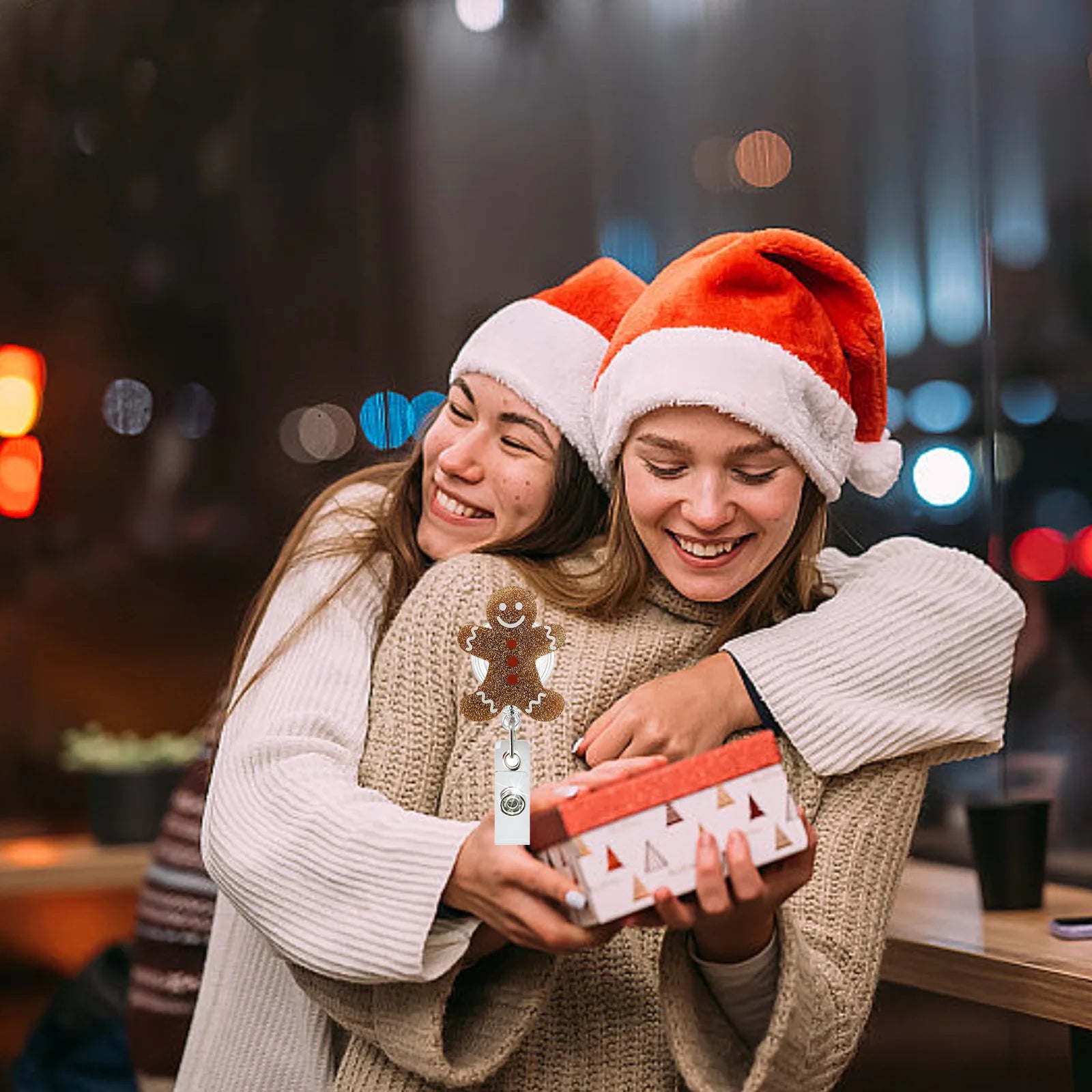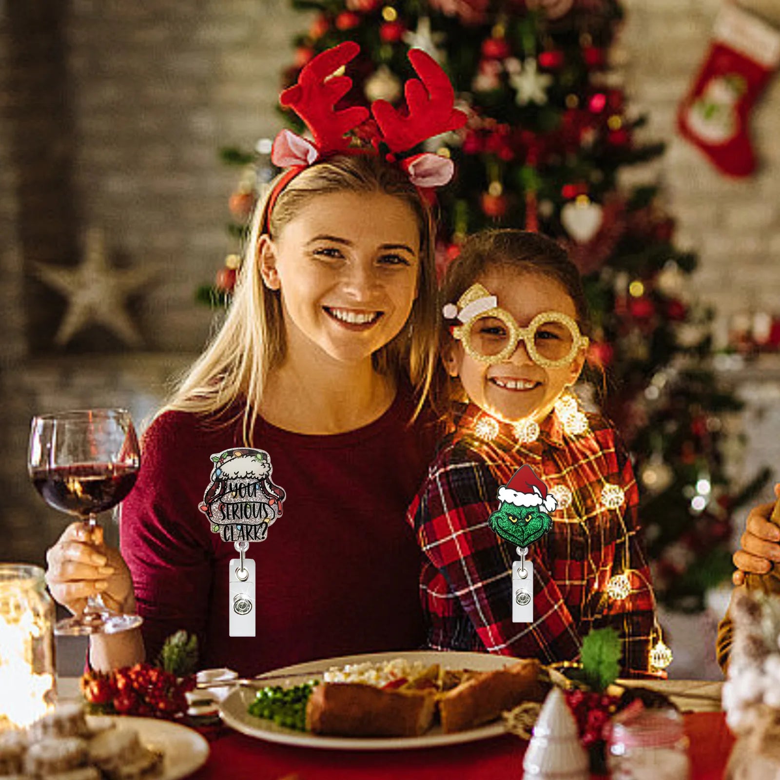2025 New Design 1 Piece Glitter Acrylic Retractable Nurse Badge Reel Cute Christmas Man Hat Party Doctor ID Card Holder Lanyard