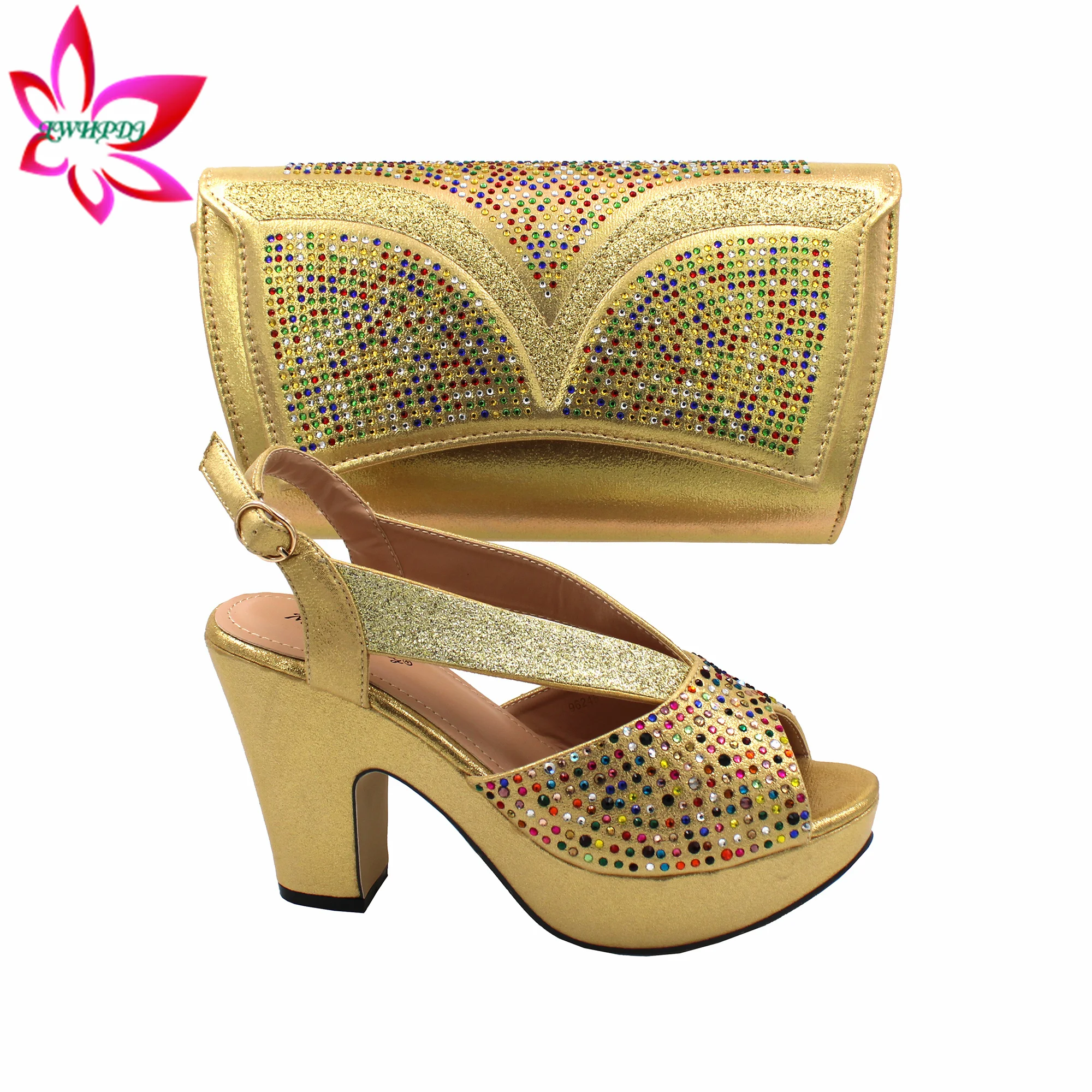 New Latest Full Of Colorful Water Drill Design Peep Toe LadiesSandal with Bag Set For Women Wedding
