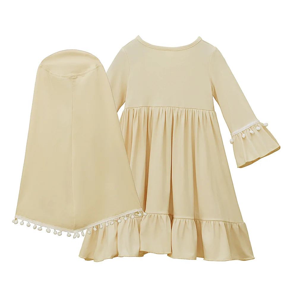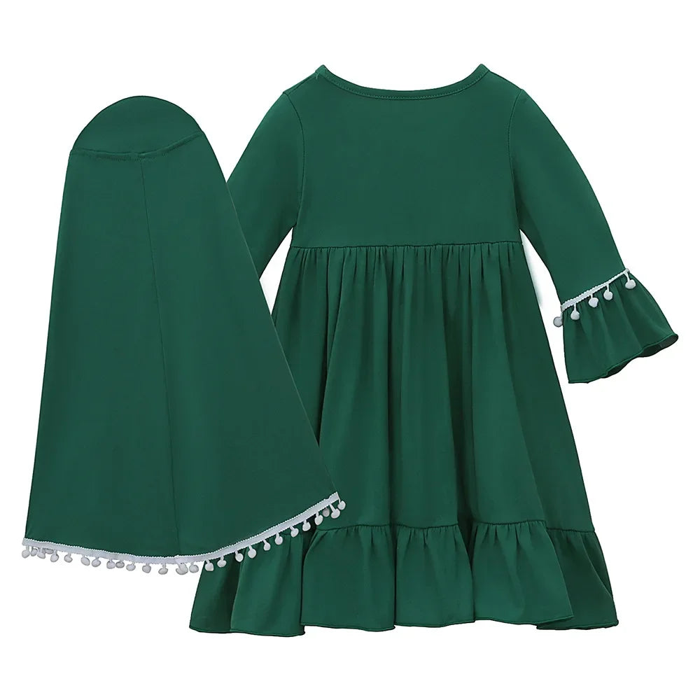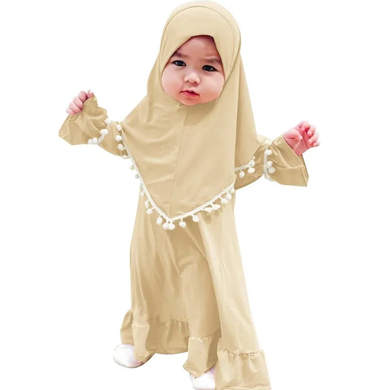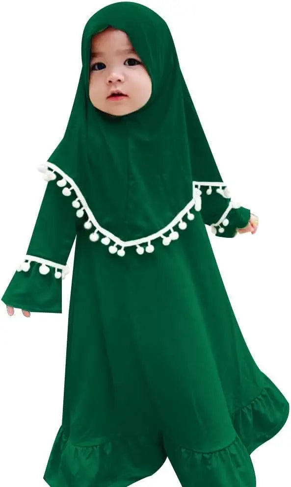 Elevate Your Child's Wardrobe with Our 2pcs Kids Girls Hijab Abaya Muslim Set