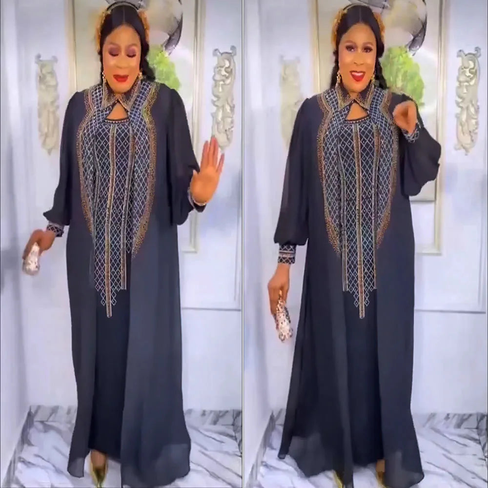 African Plus Size Boubou Chiffon 2 Piece Set Dresses For Women Muslim Fashion Kaftan Abayas Wedding Party Maxi Robe Vestidos