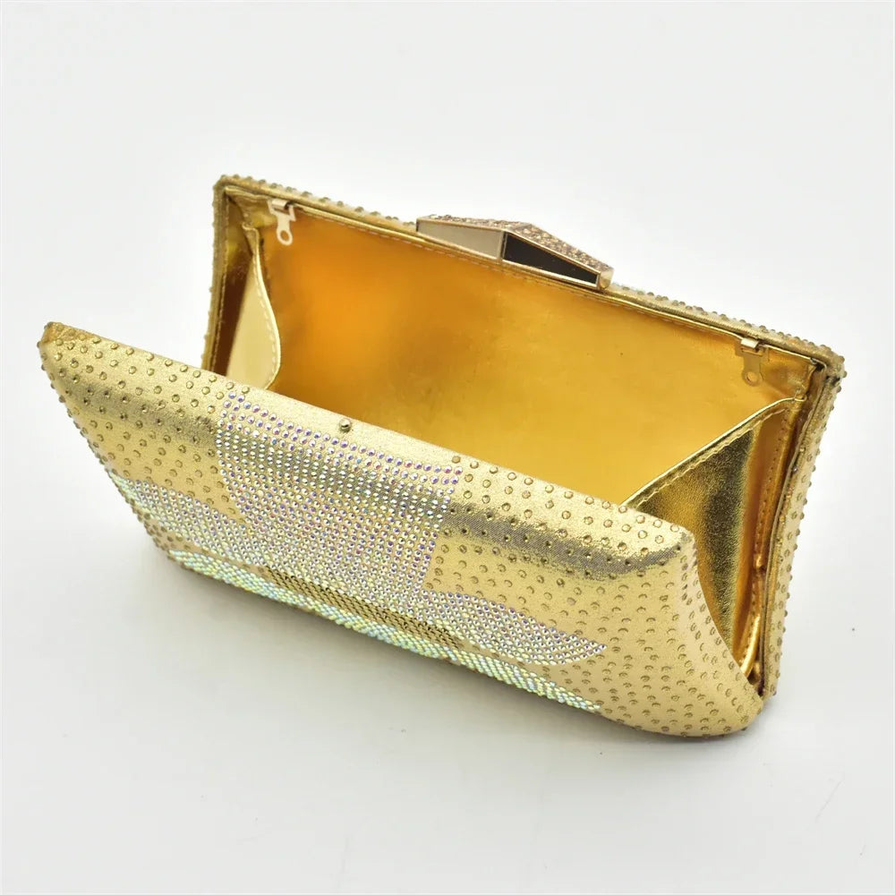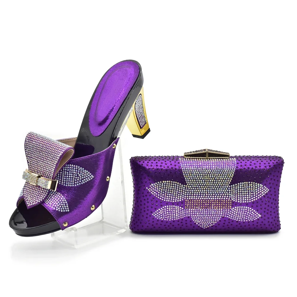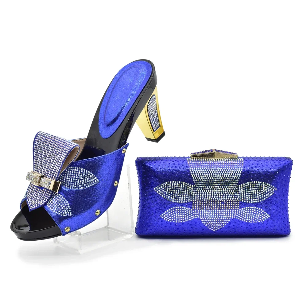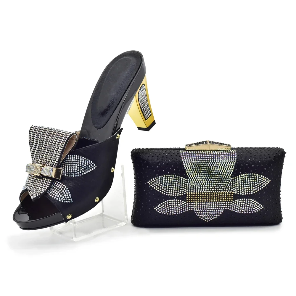 African Shoes and Bag Sets for Women Italian Shoes with Matching Bags for Party Luxury Ladies Shoes Heels Full Rhinestone Purse