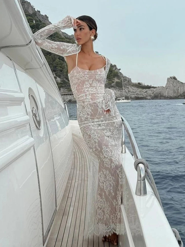 Avrilyaan Lace Print Bodycon Sexy Dress Women Robes Elegant Evening Party Dress Bodycon Spring Midi Long Dress Vestidos