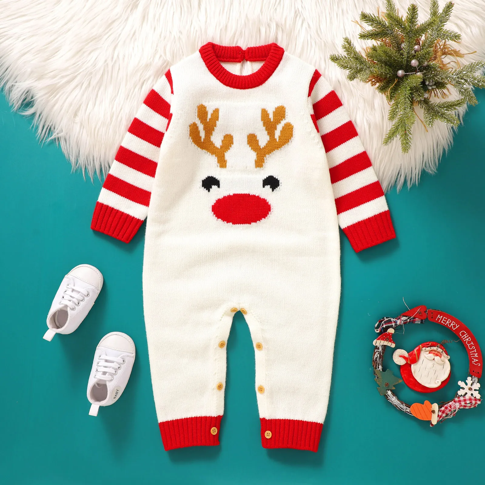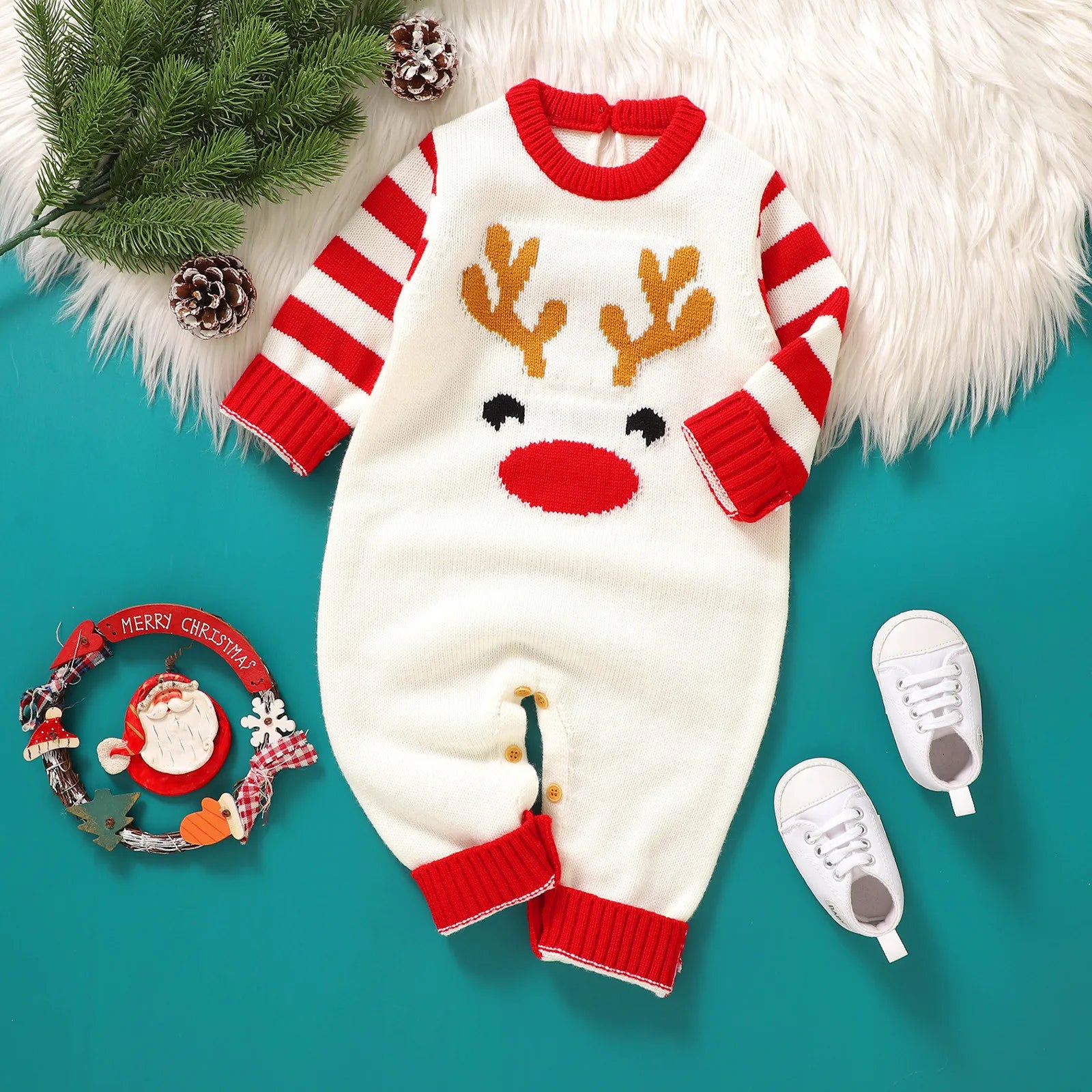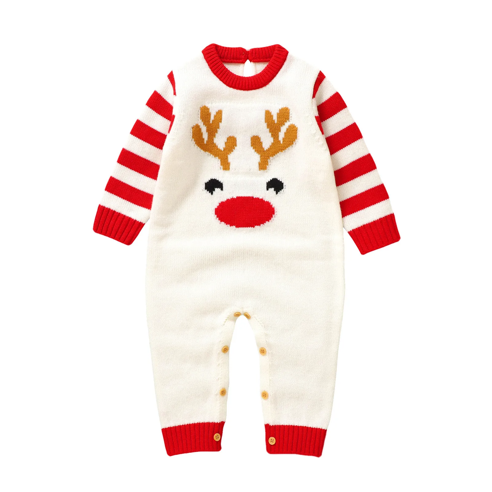 Newborn Infant Baby Boys Girls Christmas Knit Romper Sweater Deer Long Sleeve Striped Jumpsuit Warm Winter Clothes