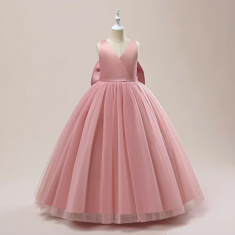 Big Bow Girls Bridesmaids Dress Long White Wedding Party Prom Pageant Princess Dresses First Communiom Formal Birthday Ball Gown