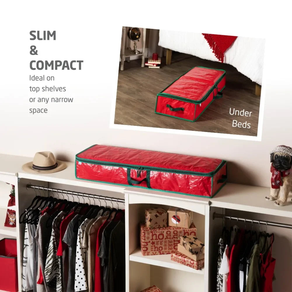 【Reinforced Handles】This Christmas storage box has two reinforced handles to support weight and make wrapping paper storage easy to transport.