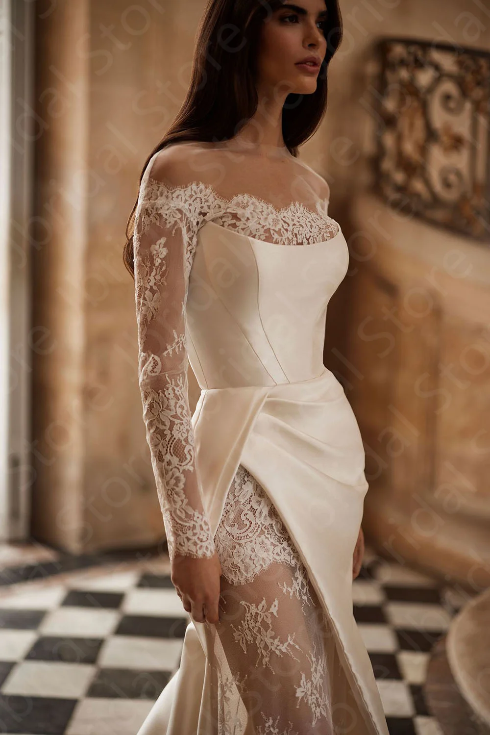 Customized Latest Wedding Dresses Lace Mermaid Bridal Gowns Long Sleeves Bride Dresses with Bolero Wedding Gowns Open Back