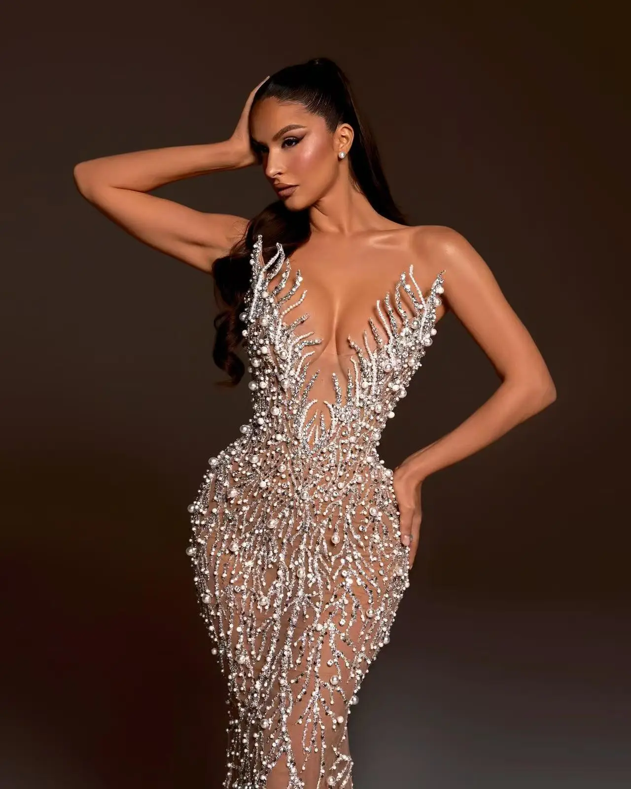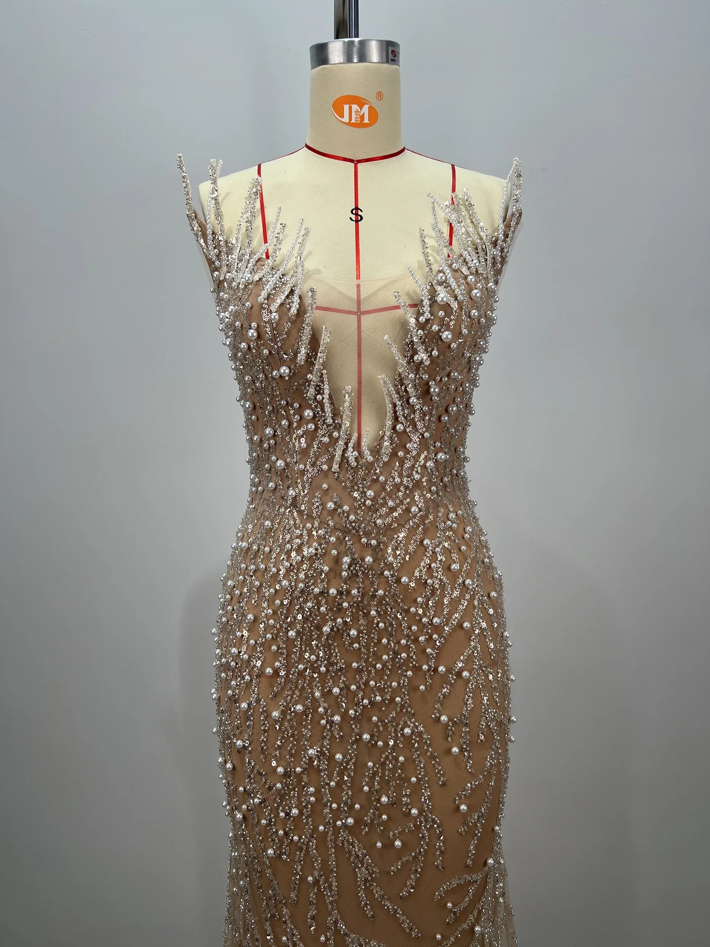 Haute couture Wedding Party dress Sequin embroidery Pearl Beading Sexy V-Neck Strapless Dress Celebrity Birthday Party Outfit