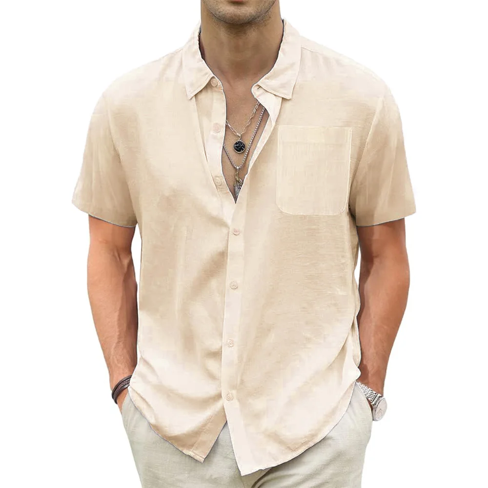 Men's Cotton Linen Short Sleeve Shirts Casual Lightweight Hawaiian Shirts Vacation Beach Summer Men Tops with Pocket