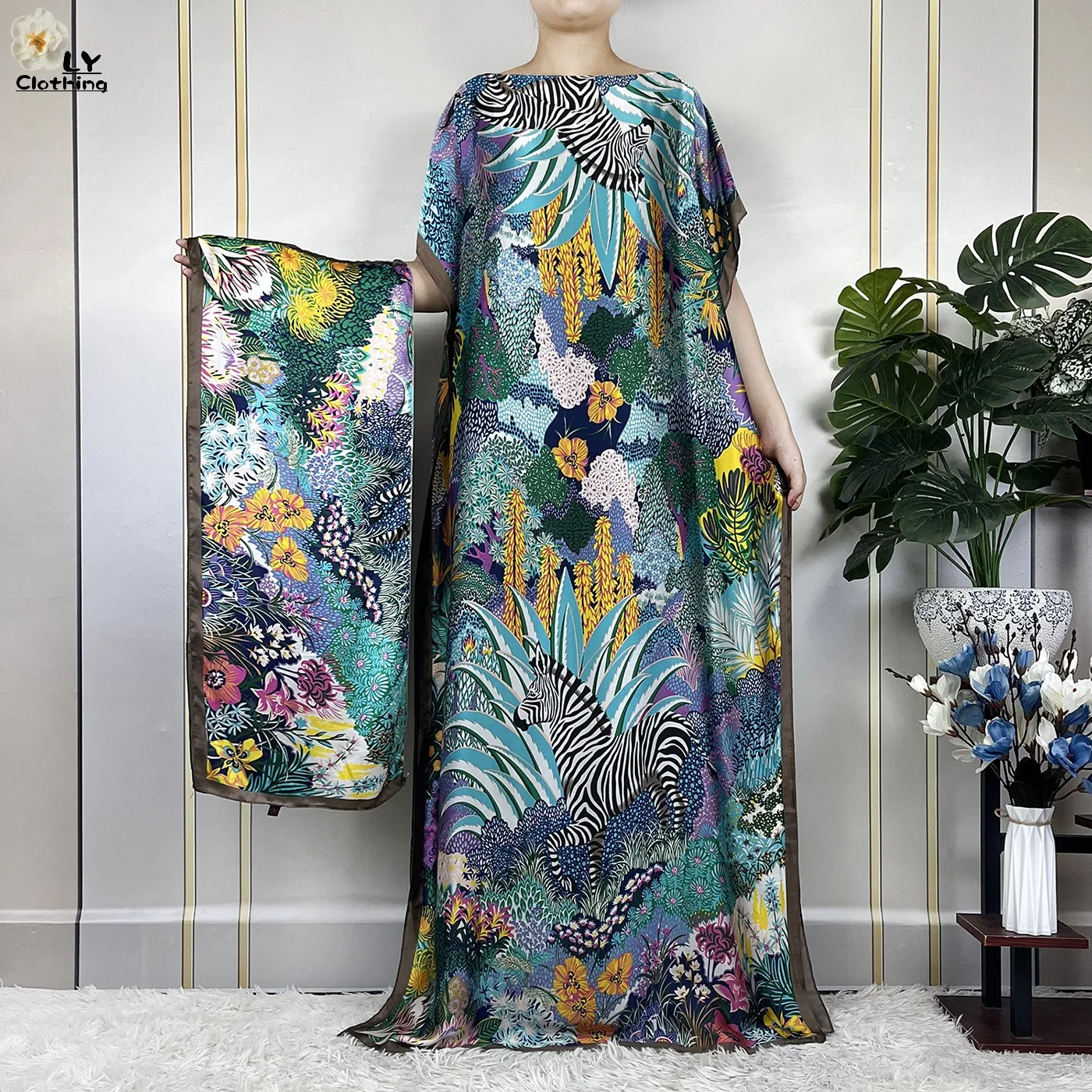 Muslim Abayas For Women 2025 New Fashion Printed Silk Soft Loose Femme Elegant Robe African Maxi Party Dresses With Belt Turban