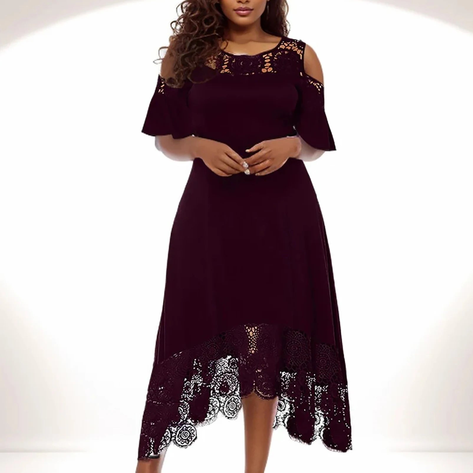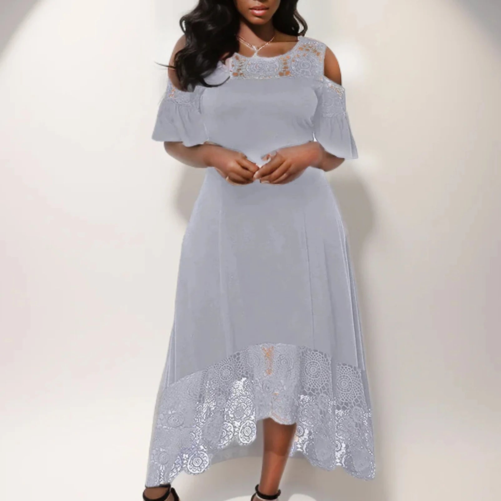 Party Dress for Women Elegant Classy Plus Size Summer Round-Neck Off Shoulder Dress Lace Short Sleeve Wedding Guest Dresses