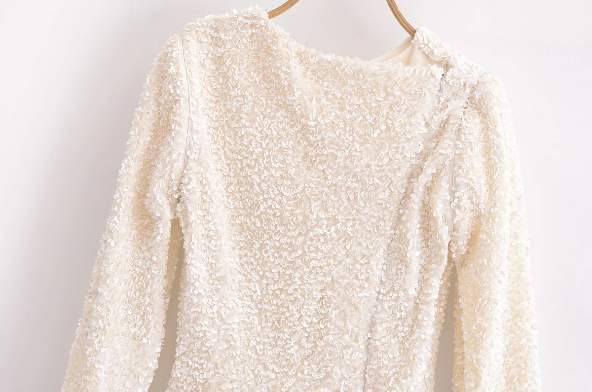 Autumn Party Dress Woman Trendy Solid O-Neck Long Sleeve Sequins Decorate Zipper Female High Street Long Dresses