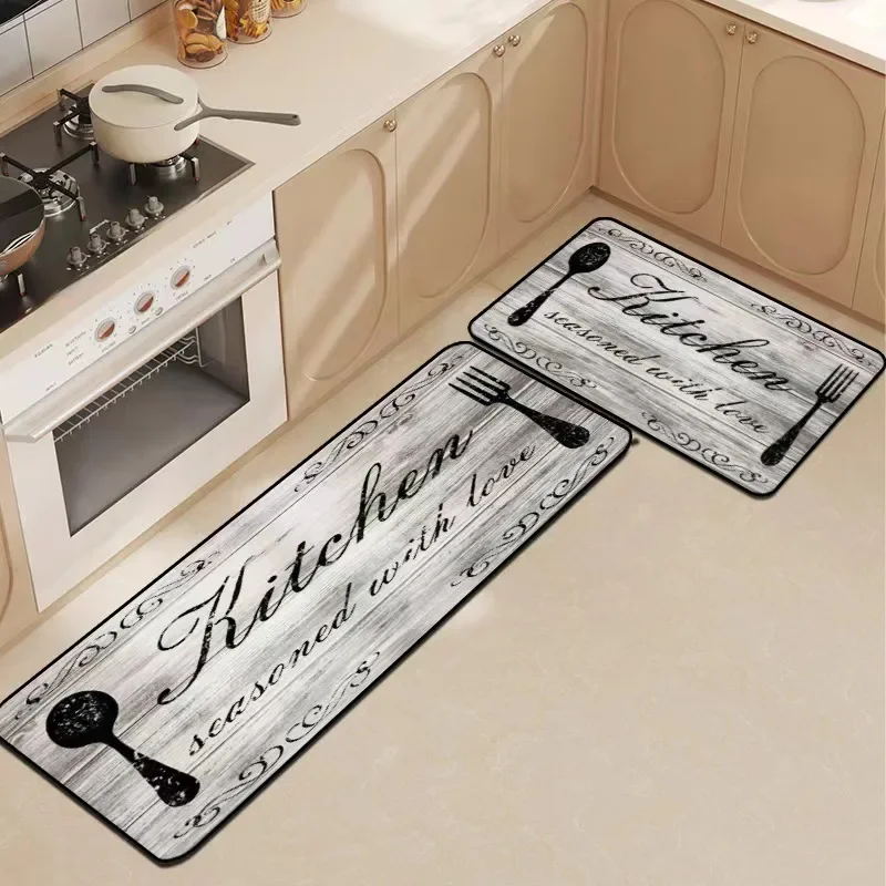 VIKAMA Washable Crystal Velvet Floor Mat Comfortable Soft Standing Mat Kitchen Theme Floor Mat Non-Slip Waterproof