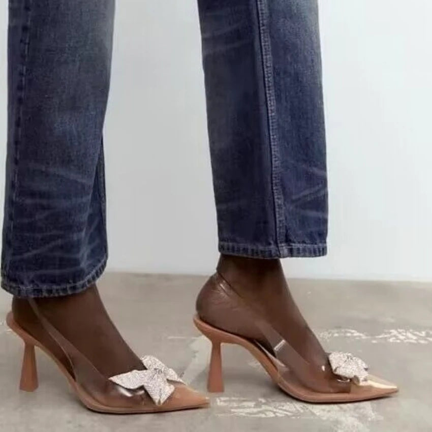 Women Summer Bow Rhinestone Slingback Pumps Fashion Lady Transparent High Heels Sandals Elegant Pointed Toe Heels 2023